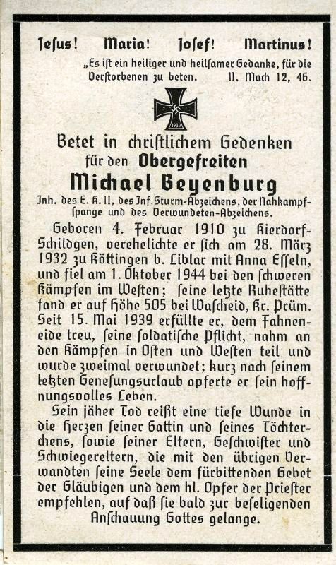 Gefallener 2. Weltkrieg; ∞ Anna Beyenburg, geb. Esseln |