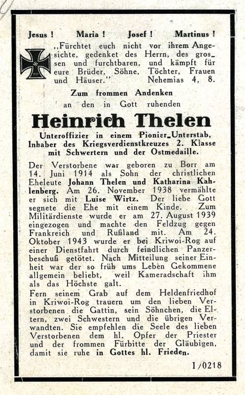 | Gefallener 2. Weltkrieg; Eltern: Johann Thelen und Katharina Kahlenberg; ∞ Luise Wirtz |