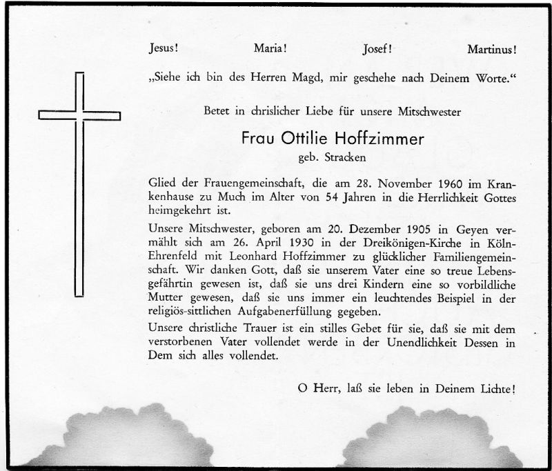 ∞ 26.4.1930 in Köln-Ehrenfeld Leonhard Hoffzimmer; 3 K. |