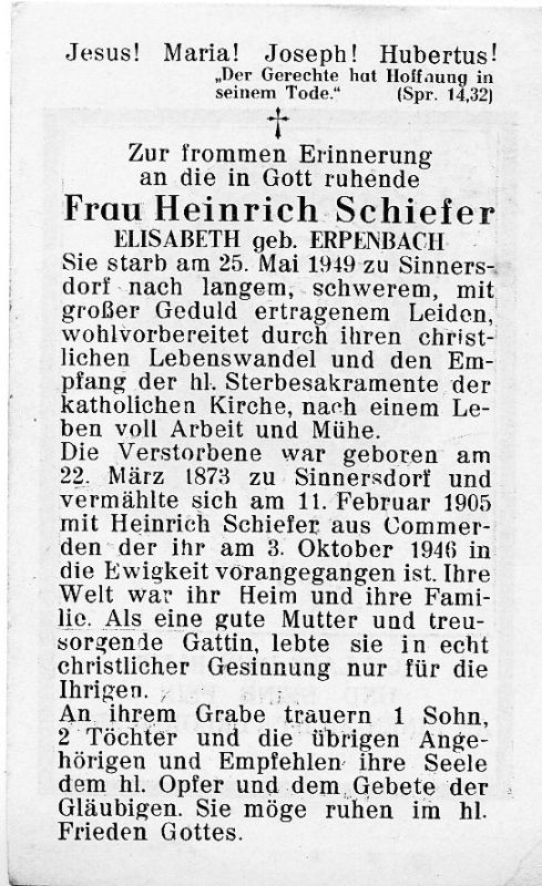 ∞ 11.2.1905 Heinrich Schiefer aus Commerden, † 3.10.1946; 3 überlebende Kinder |