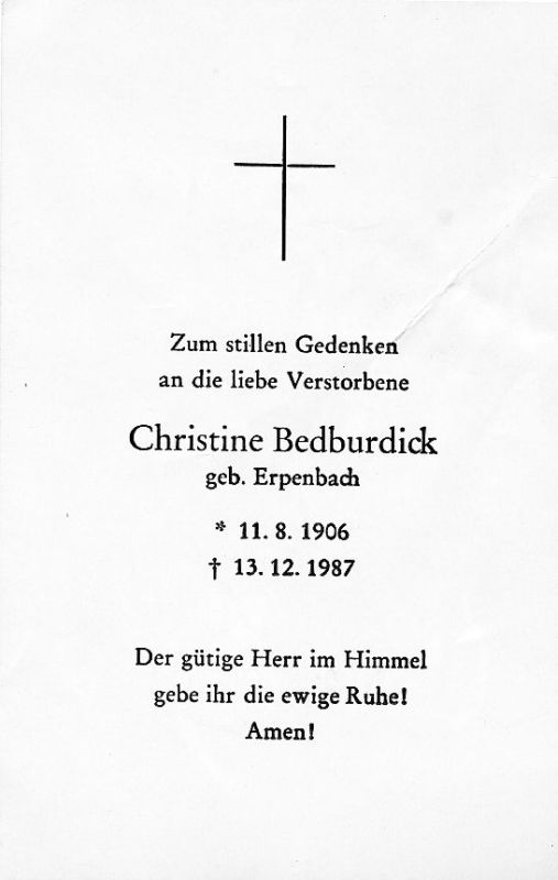 (Eltern: Wilhelm Erpenbach u. Maria geb. Löhr; ∞ Theodor Bedburdick) |