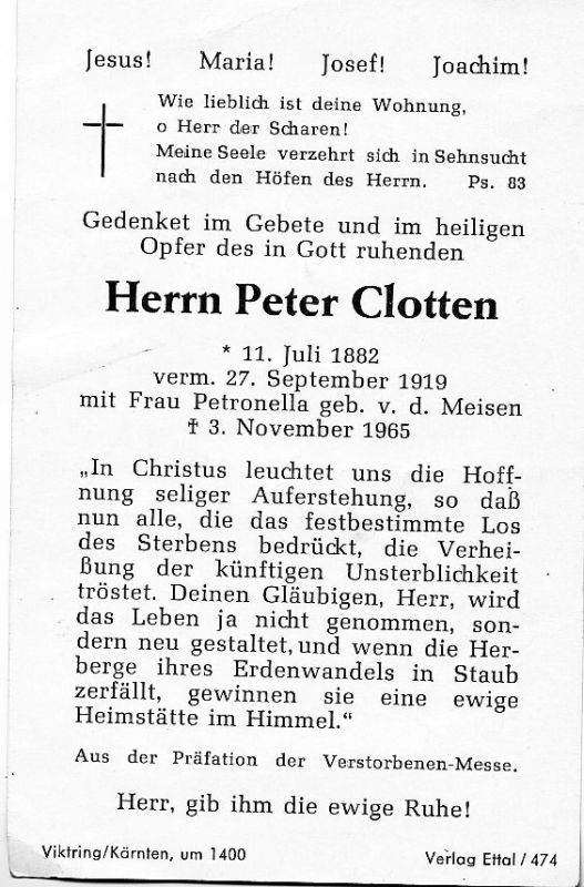 ∞ 27.9.1919 Petronella von der Meisen (Düren) |