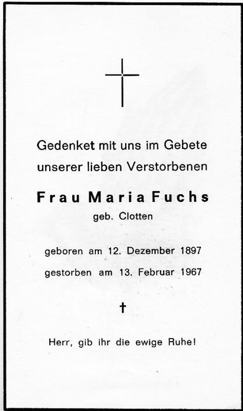 (Eltern: Josef Franz Clotten u. Gertrud geb. Hacking; ∞ Martin Fuchs) |