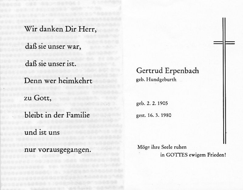 Erpenbach, geb. Hundgeburth | Vorname: |