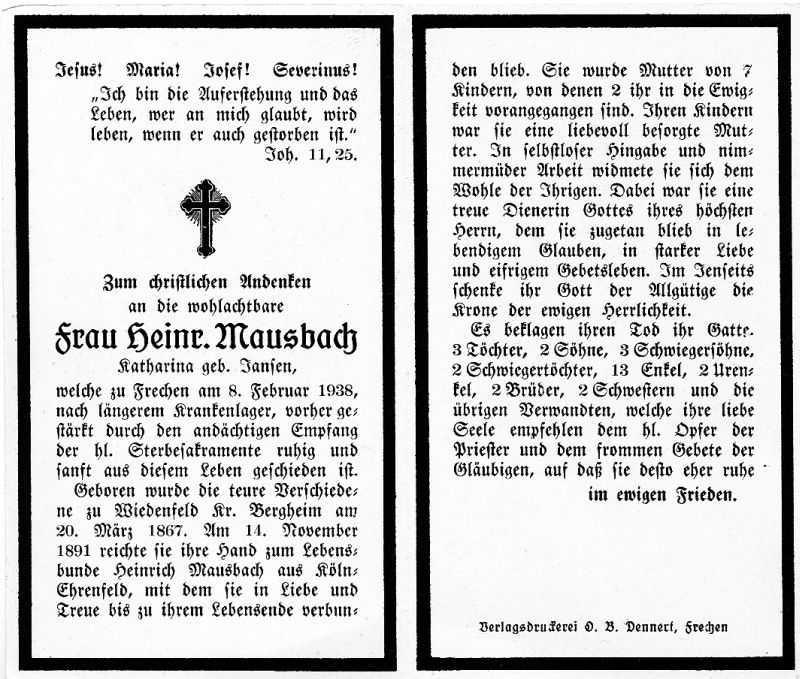 ∞ 14.11.1891 Heinrich Mausbach aus Köln-Ehrenfeld; 7 K., davon 2 † |