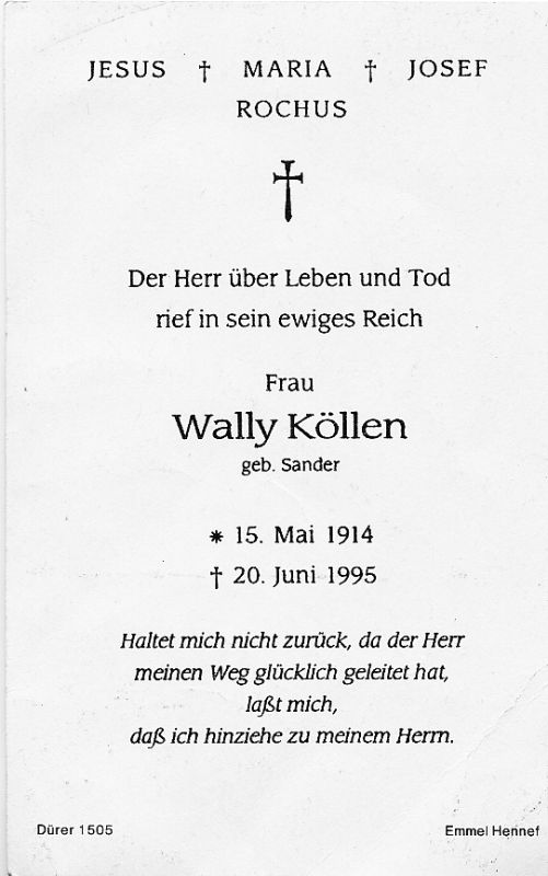 ∞ 1938 Heinrich Köllen aus Grefrath; 3 K.; Sohn Heinz † 1947 |
