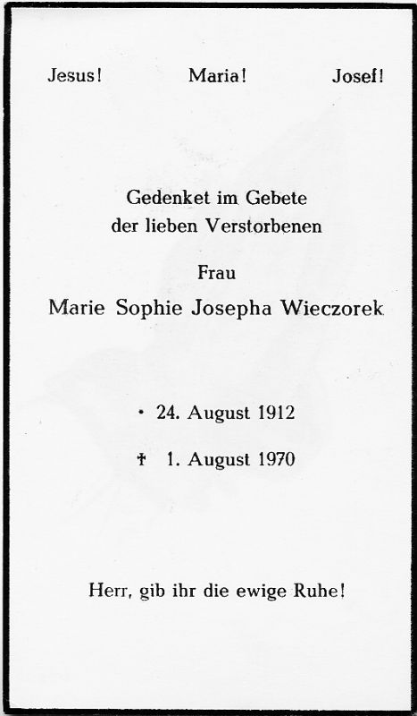 Wieczorek, Maria Sophie Josepha