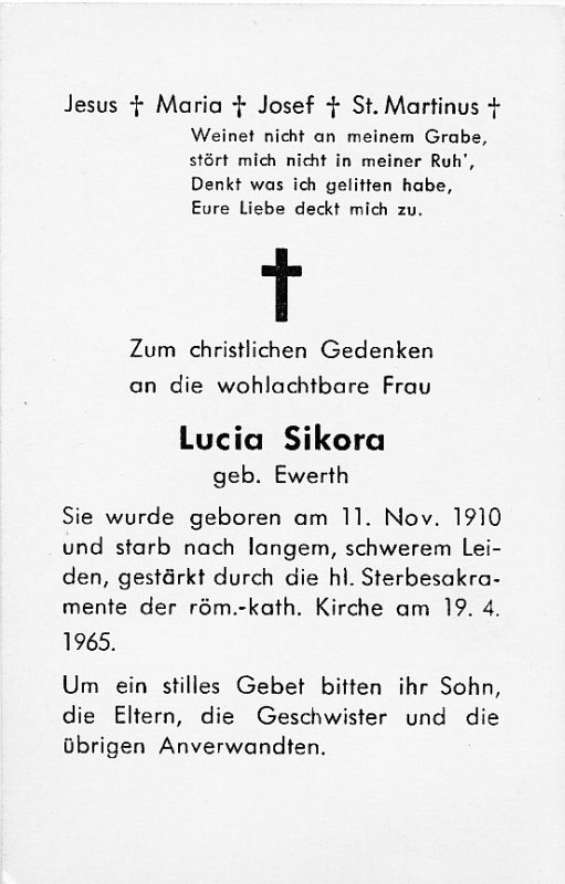 Sikora, geb. Ewerth | Vorname: |