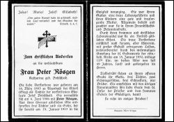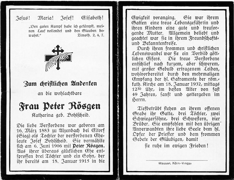 Vater: Josef Bohlscheid; ∞ 6.6.1906 Peter Rösgen; 3 Töchter; 1 Sohn, † 18.1.1915 (Druck in Köln-Vingst) |
