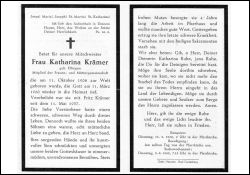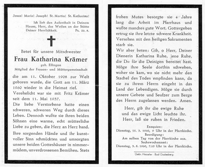 ∞ 11.5.1937 Fritz Krämer; 2 Söhne; schweres Leben (Druck in Bad Godesberg) |