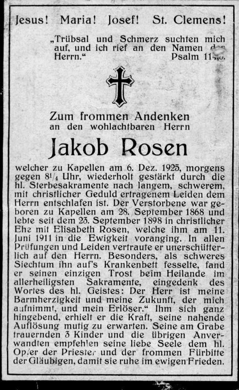 ∞ 23.9.1898 Elisabeth Rosen, † 11.6.1911; zuletzt schweres Siechtum |