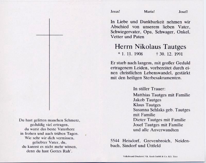 Angehörige wohnen in Heisdorf, Grevenbroich, Neidenbach, Sindorf, Üttfeld; Druck in Trier |