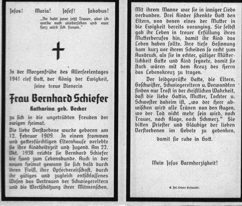 ∞ 22.10.1938 Bernhard Schiefer; 3 K., davon 1 † (Neukirchen) |