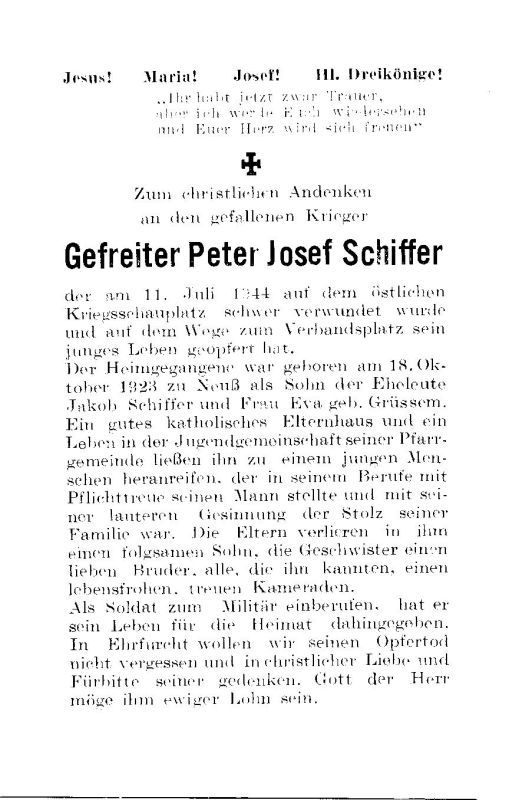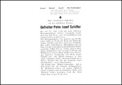 Gefallener 2. Weltkrieg; Eltern: Jakob Schiffer u. Eva geb. Grüssem; |