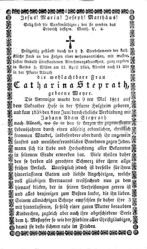 | ∞ 8.6.1838 Johann Adam Steprath aus Allrath; 3 K. |