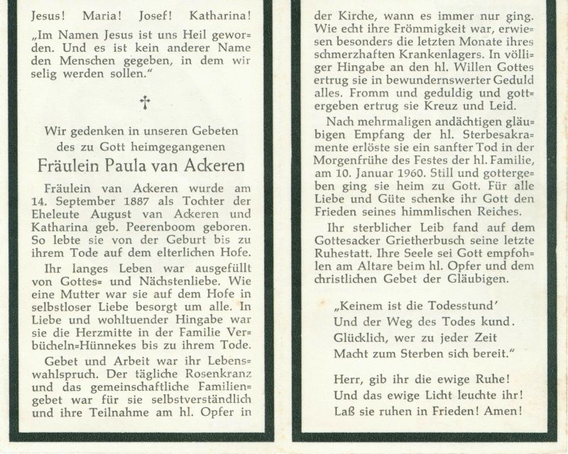 Fräulein; Eltern: August van Ackeren u. Katharina geb. Peerenb∞m; lebte auf elterl. Hof; Mitte der Familie Verbücheln-Hünnekes |