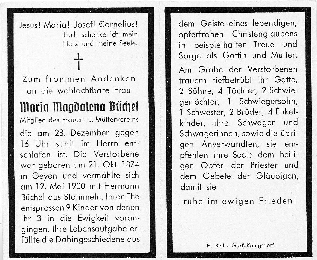 ∞ 12.5.1900 Hermann Büchel aus Stommeln; 9 K., davon 3 † (Geyen) |