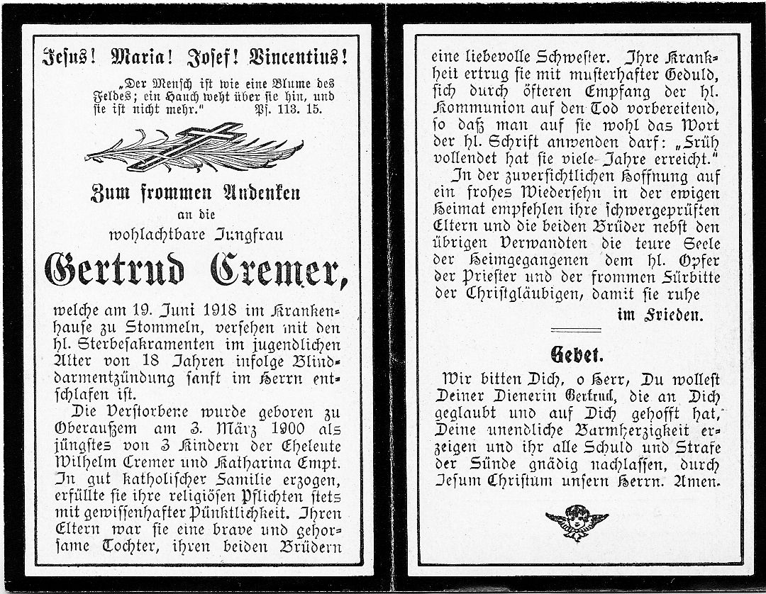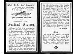 Jungfrau; Eltern: Wilhelm Cremer u. Katharina geb. Empt |