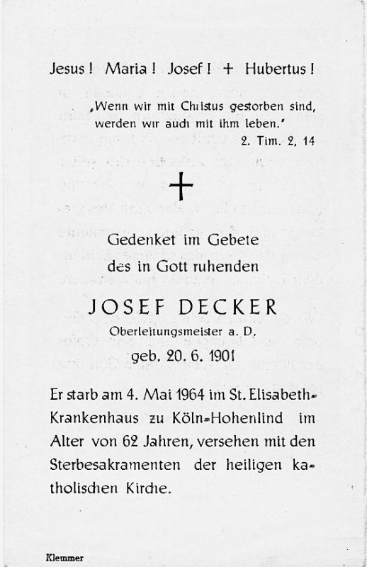 St.Elisabeth-Kh. In Köln-Hohenlind | Sterbedatum: |