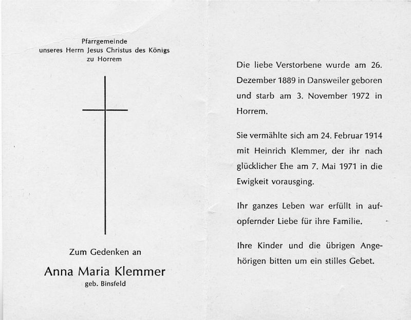 ∞ 24.2.1914 Heinrich Klemmer, † 7.5.1971; Kinder |