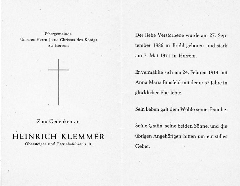 | ∞ 24.2.1914 Anna Maria Binsfeld; 57 J. Ehe; 2 überlebende Söhne |