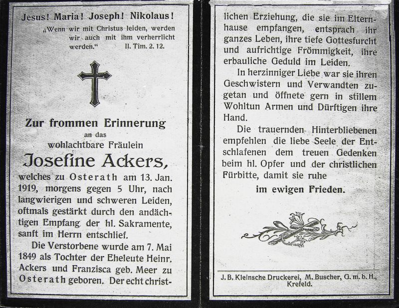 Fräulein; Eltern: Heinrich Ackers u. Franzisca geb. Meer |