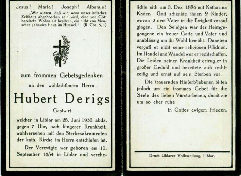 | Gastwirt; ∞ 3.12.1896 Katharina Kader; 9 K., davon 2 † |