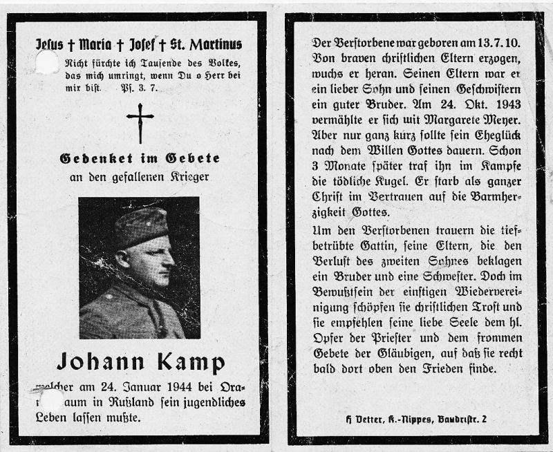 Gefallener 2. Weltkrieg; ∞ 24.10.1943 Margarete Meyer |