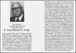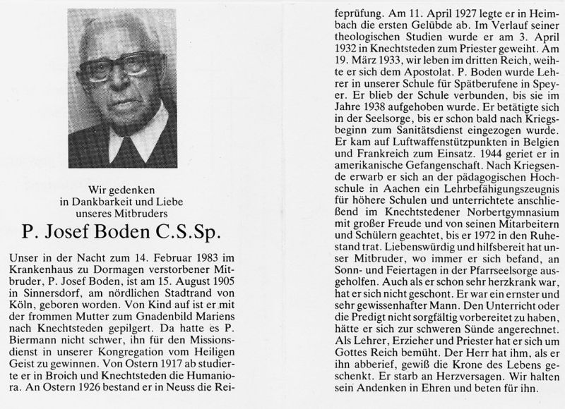 Priesterweihe in Knechtsteden am 3.4.1932; Lehrer in Speyer, im 2. Weltkrieg Sanitätsdienst; Lehrer am Norbertgymnasium in Knechtsteden; 1972 Ruhestand |