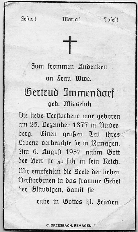 Immendorf, geb. Misselich | Vorname: |