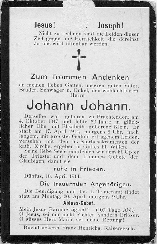 32 J. verh. mit Elisabeth Klein (Druck in Kaisersesch) |