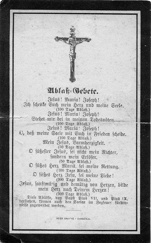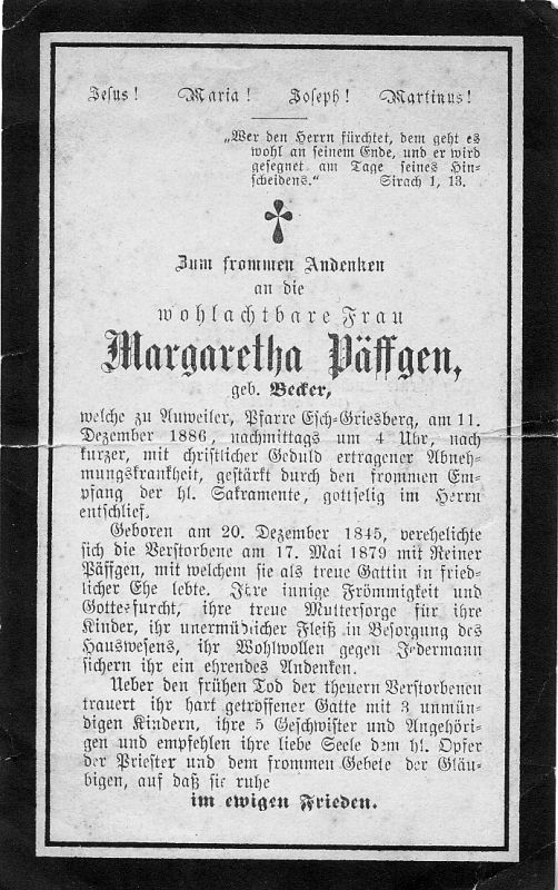 ∞ 17.5.1879 Reiner Päffgen; 3 überlebende unmündige Kinder |