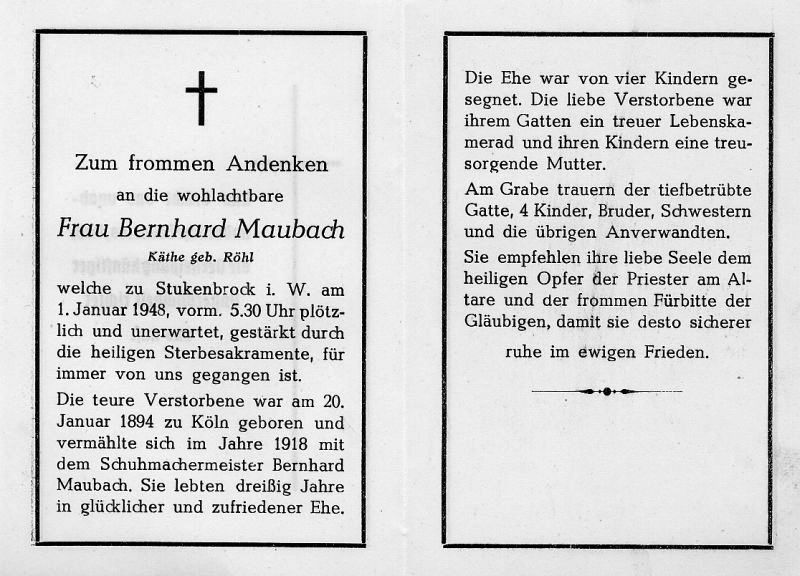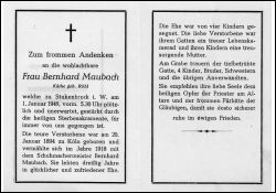 ∞ 1918 Schuhmachermeister Bernhard Maubach; 4 K. |