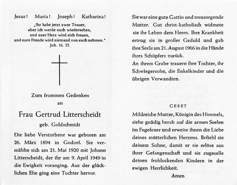 ∞ 21.5.1920 Johann Litterscheidt, † 9.4.1949; 1 Tochter |