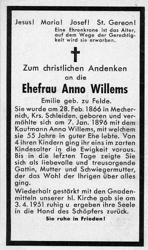 | ∞ 7.1.1896 Kaufmann Anno Willems; 4 K., davon 1 früh † (Köln) |
