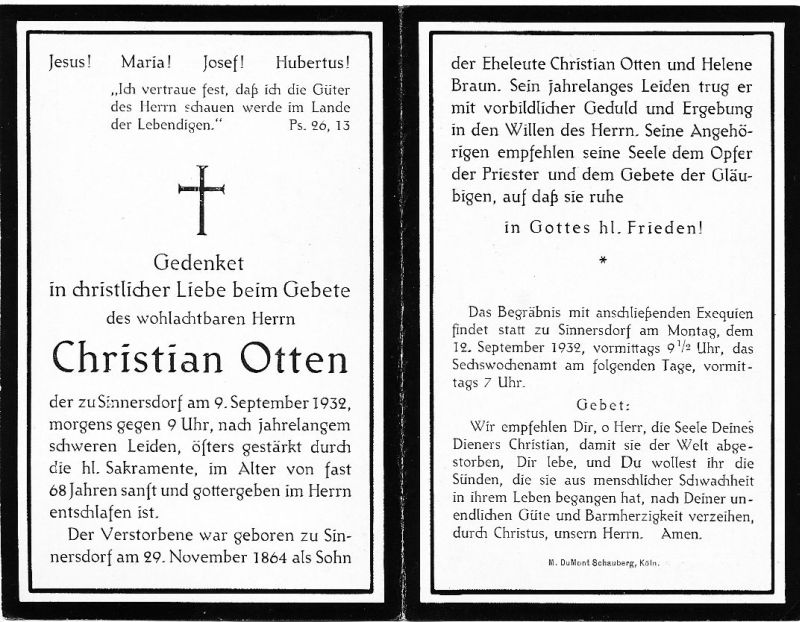Eltern: Christian Otten u. Helene geb. Braun; jahrelanges Leiden |