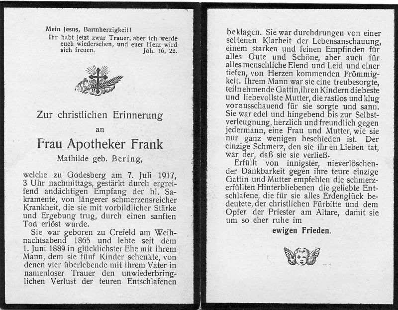 | ∞ 1.6.1889 Apotheker Frank; 5 K., davon 1 †; |