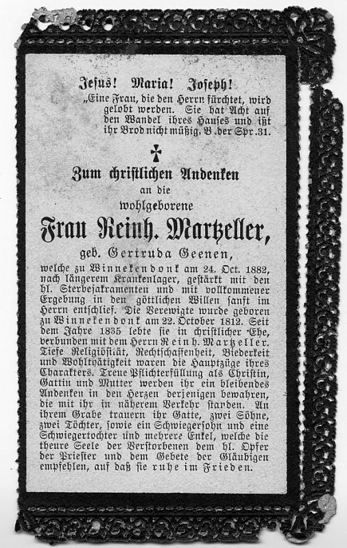 | ∞ 1835 Reinhard Martzeller; 4 überlebende Kinder |
