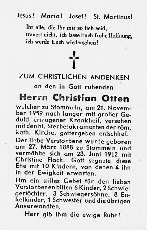∞ 23.6.1912 Christine Flock; 10 Kinder, davon 4 verstorben |