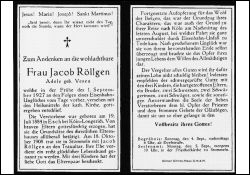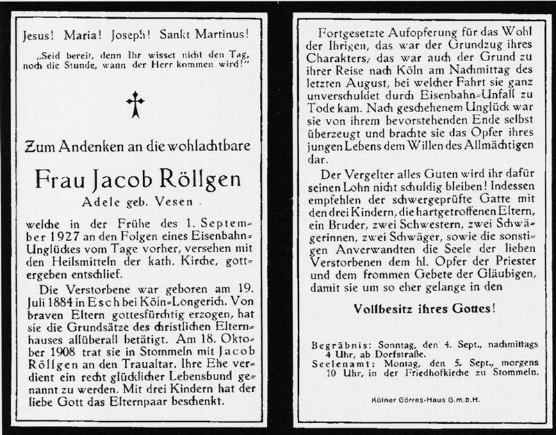 ∞ 18.10.1908 Jacob Röllgen; 3 Kinder; Tod durch Eisenbahnunglück |