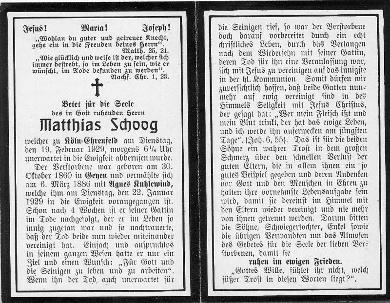 | ∞ 6.3.1886 Agnes Kuhlewind, † 22.1.1929; er folgte ihr n. 4 Wochen in den Tod; überlebende Söhne |