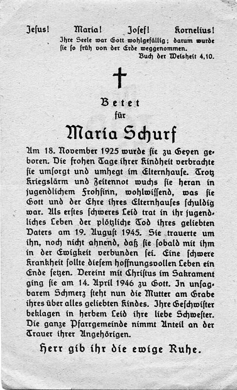 Plötzlicher Tod des Vaters am 19.8.1945 |