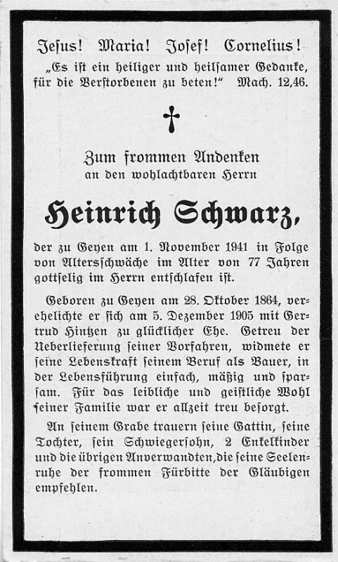Altersschwäche; ∞ 5.12.1905 Gertrud Hintzen; Beruf: Bauer |
