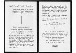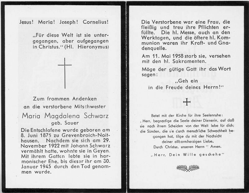 ∞ 29.11.1922 Johann Schwarz, ∞ 30.1.1945; seit der Eheschließung wohnhaft in Geyen |