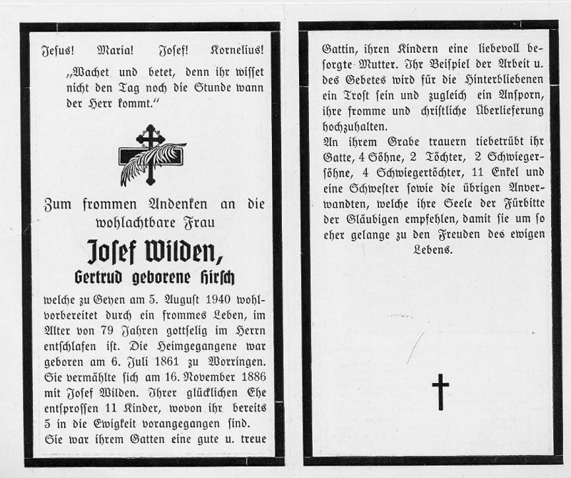 | ∞ 16.11.1886 Josef Wilden; 11 K., davon 5 †|