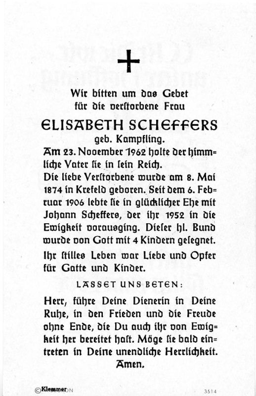 ∞ 6.2.1906 Johann Scheffers, † 1952; 4 K. |