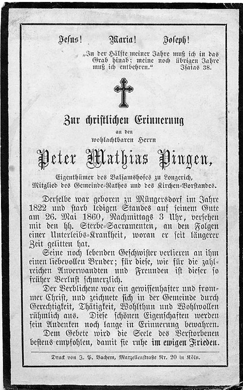 Ledig; Eigentümer des Balsamshofes zu Longerich; Mitgl. Gemeindrat u. Kirchenvorstand |