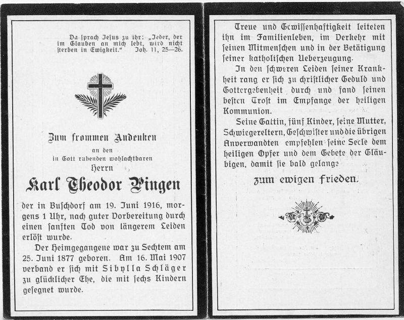 ∞ 16.5.1907 Sibylla Schläger; 6 K., davon 1 †; schweres Leiden |