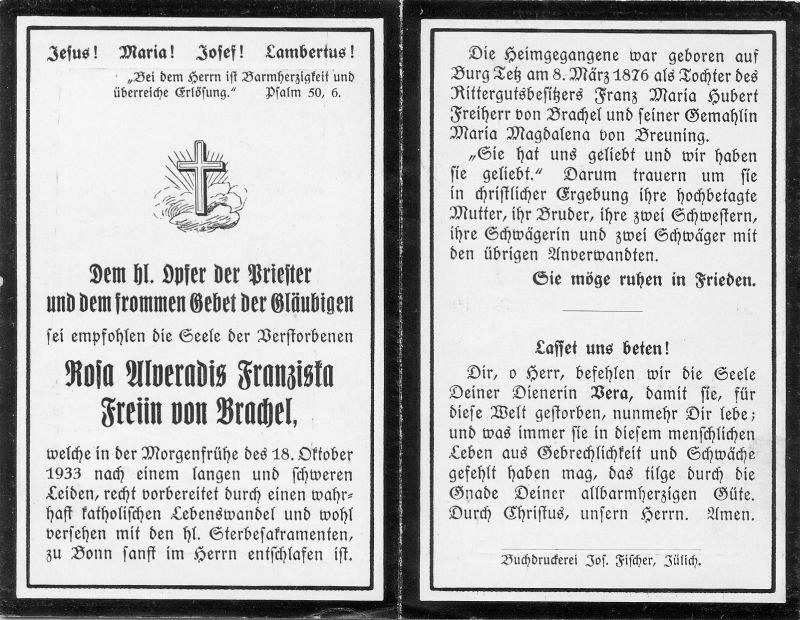 Brachel, Freiin von, Rosa Alveradis Franziska