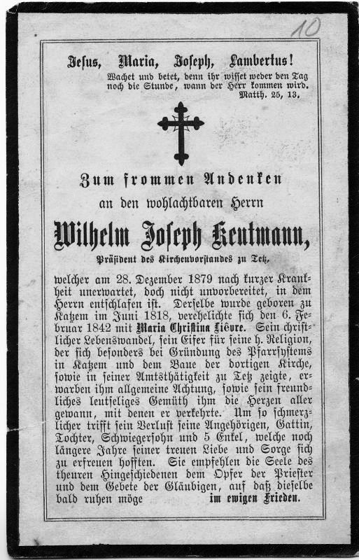 Präs. d. Kirchenvorstandes Tetz; ∞ 6.2.1842 Maria Christina Lièvre; Verdienste b. Gründung des Pfarrsystems in Katzem u. b. Bau der dortigen Kirche; 1 überlebende Tochter |
